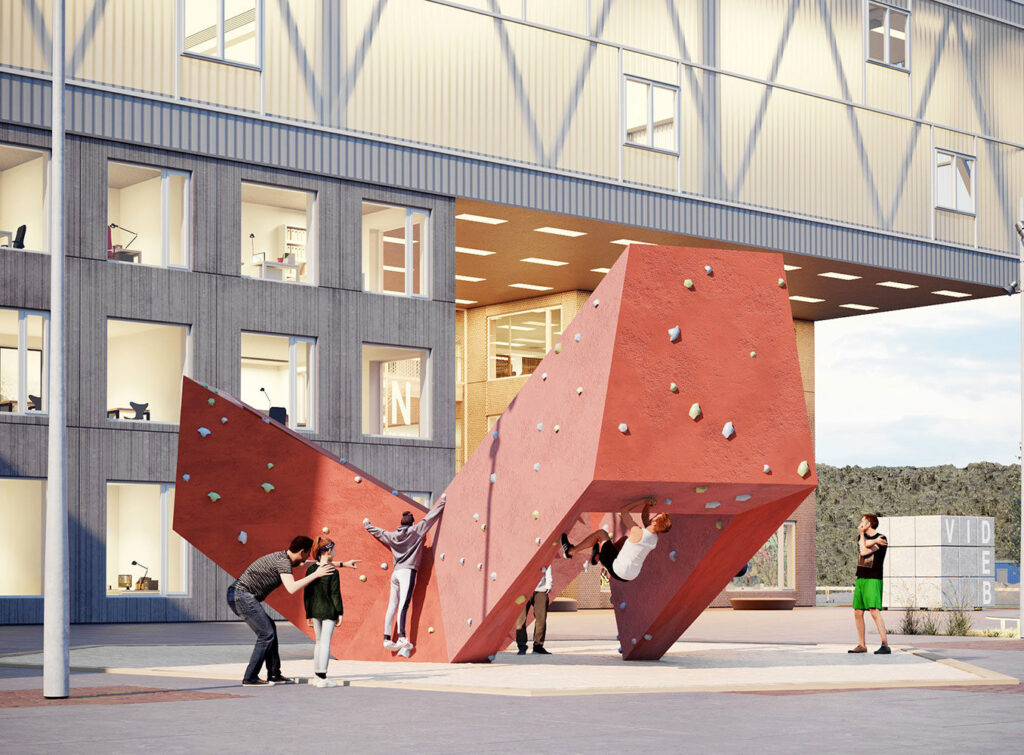 Inspiré des blocs d’escalade en salle, ce bloc urbain est équipé de centaines de prises en résine polyester durables, déclinées en différentes formes et tailles.