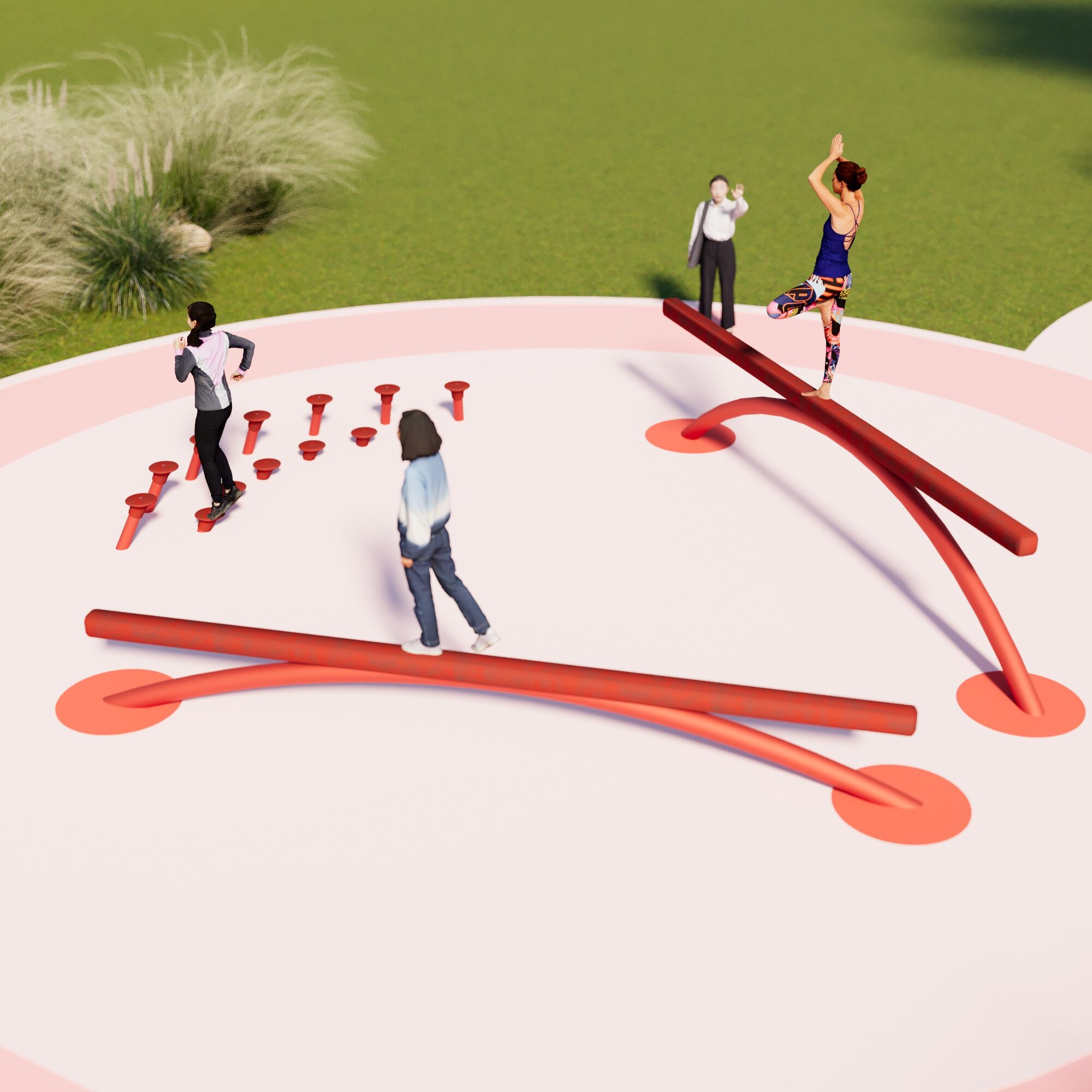 Paired together, these beams turn movement into playful challenges, encouraging skill and imagination.
